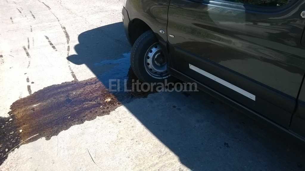 Un vecino aportó las imágenes al WhatsApp de El Litoral. El mal estado del pavimento provocó serias roturas en el tren delantero de una Peugeot Partner.